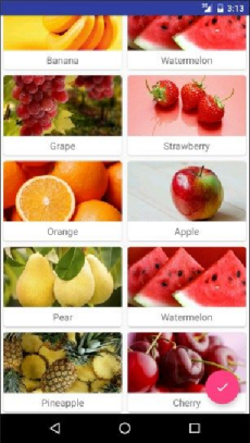 app:layout_anchor 属性指定了一个锚点,我们将锚点设置为AppBarLayout,这样悬浮按钮就会出现在水果标题栏的区域内,接着又使app:layout_anchorGravity 属性将悬浮按钮定位在标题栏区域的右下角。