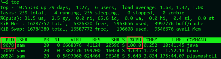 TOP –> P : 按CPU使用率排序